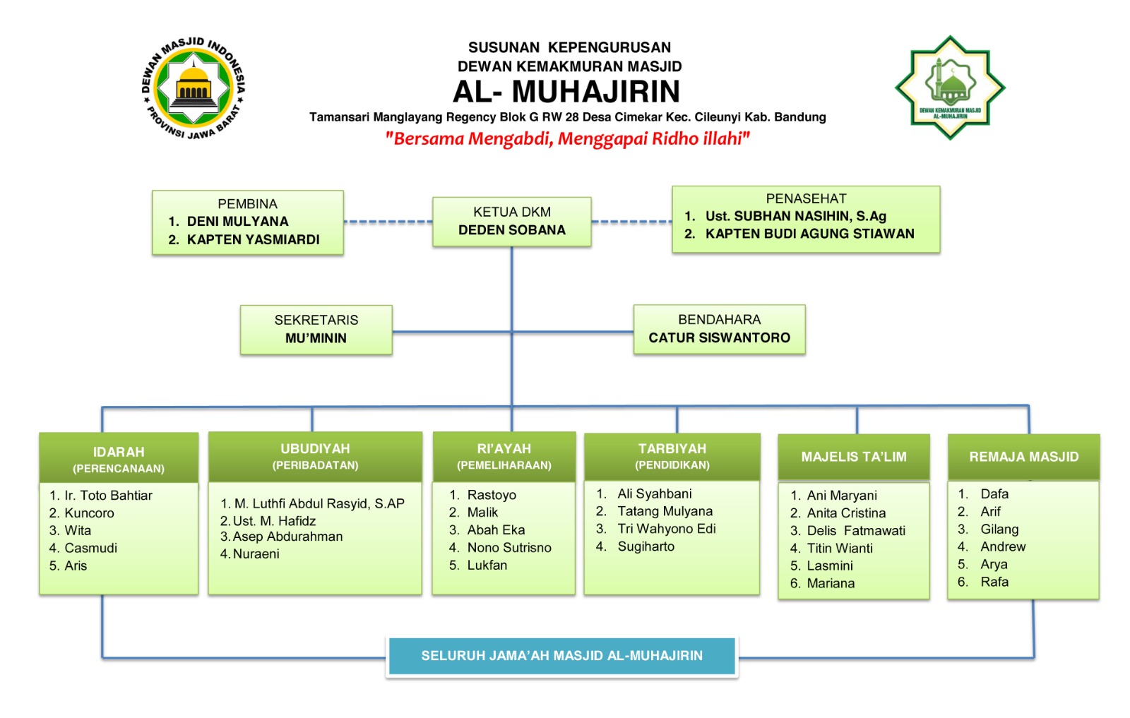 Memakmurkan Masjid dalam upaya menjadikan masjid sebagai pusat kegiatan ibadah, keilmuan dan sosial yang aktif serta menjaga keindahan dan kebersihannya.